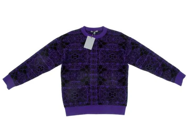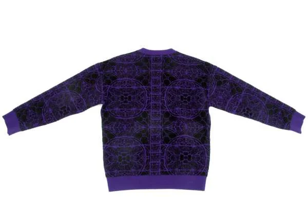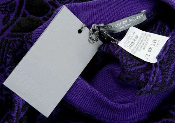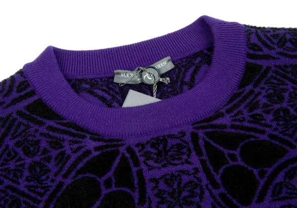 新品!【SALE】新品!アレキサンダーマックイーンAlexander McQUEEN ダブルジャガードドロップショルダートレーナー 黒パープルXS