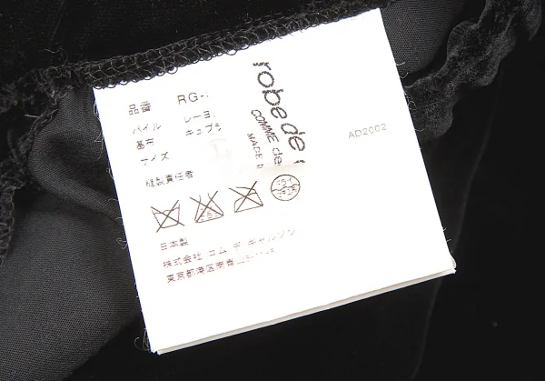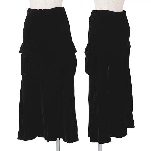 【SALE】ローブドシャンブル コムデギャルソンrobe de chambre COMME des GARCONS サイドポケットベロアロングスカート 黒W68〜80(ゴム)