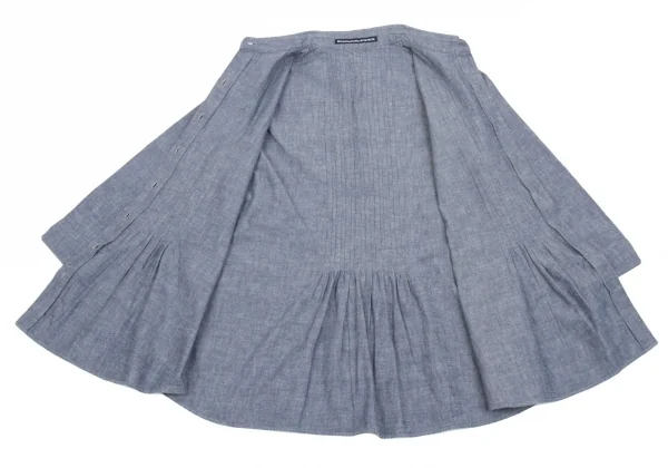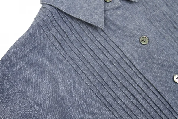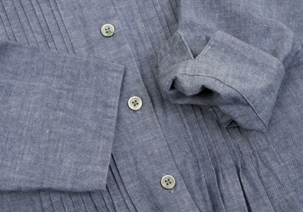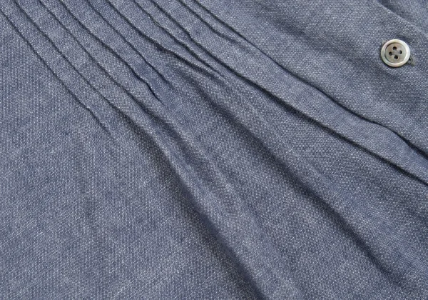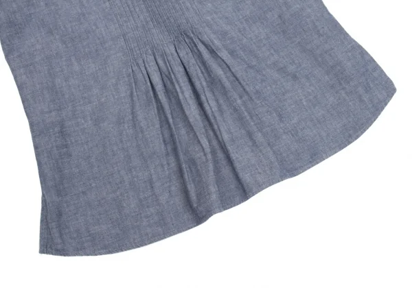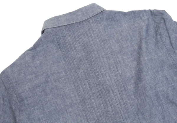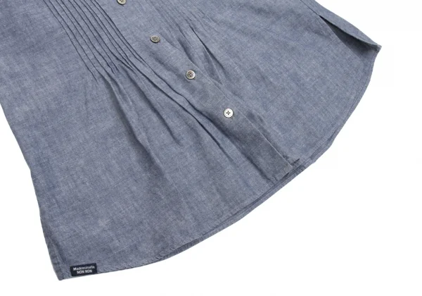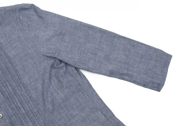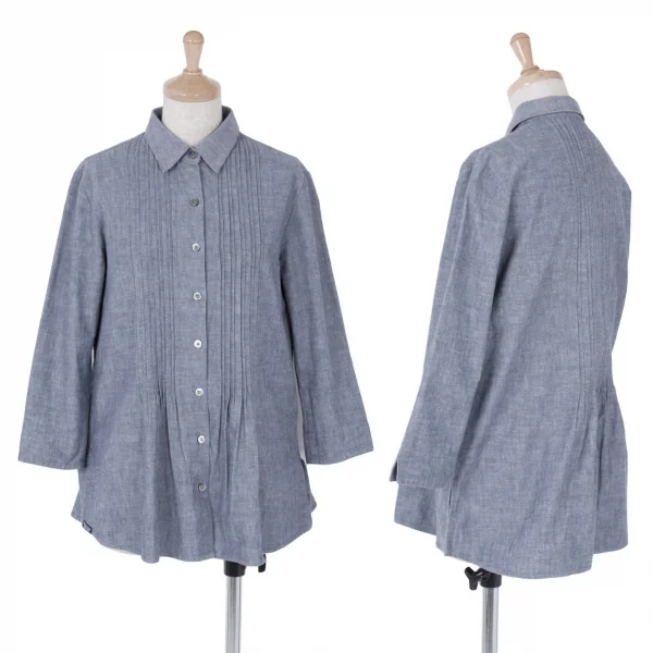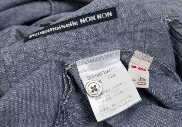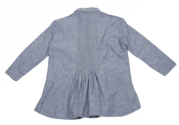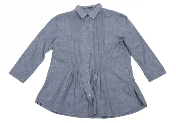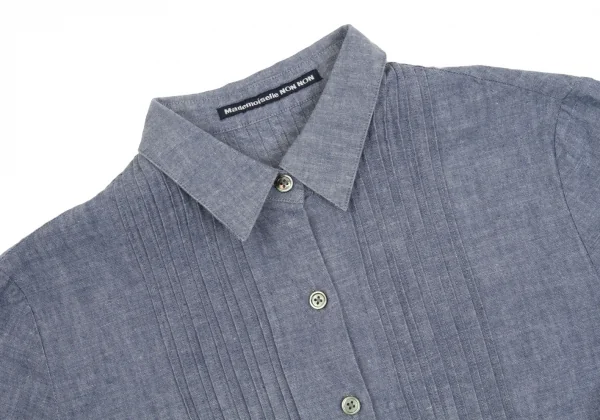 【SALE】マドモアゼルノンノンMademoiselle NON NONプリーツデザイン七分袖シャンブレーシャツ ブルーM