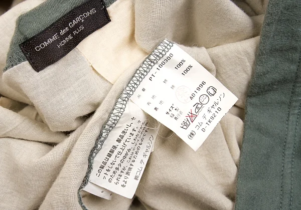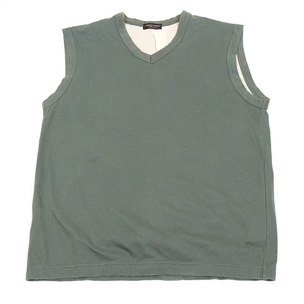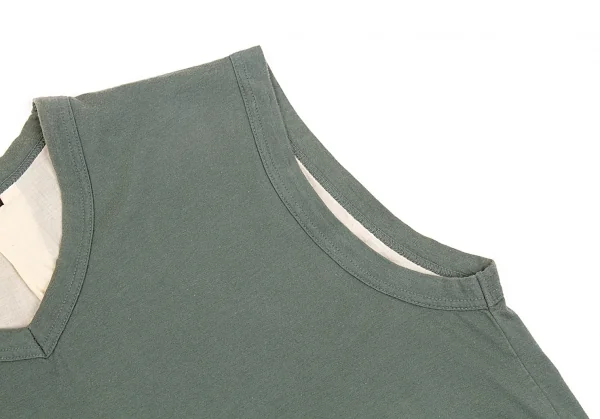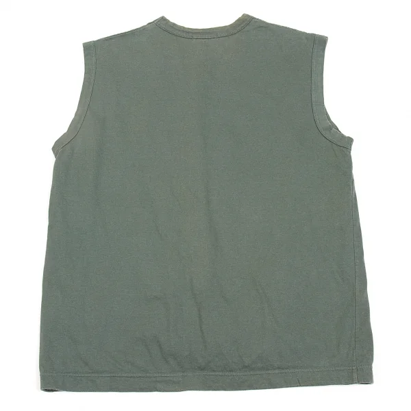 【SALE】コムデギャルソン オムプリュスCOMME des GARCONS HOMME PLUS 裏地付きコットンノースリーブカットソー モスグリーンM位