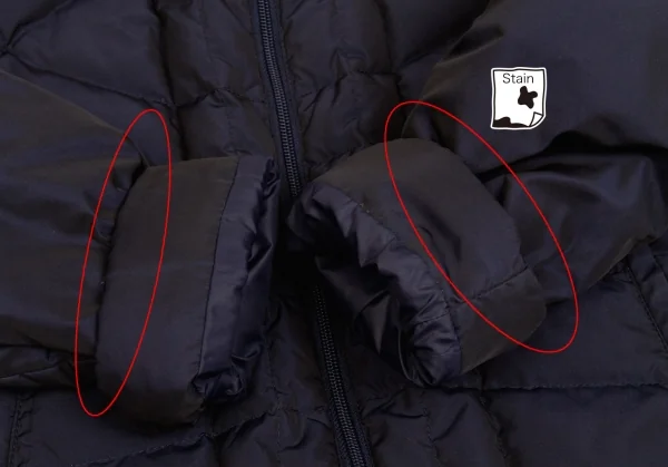 フード部分欠品、襟裏・袖裏部分に薄汚れ、ブランドタグ部分にダメージがあります(画像参照)。その他目立ったシミ、汚れ、ほつれ等なくいい状態です。クリーニング済み