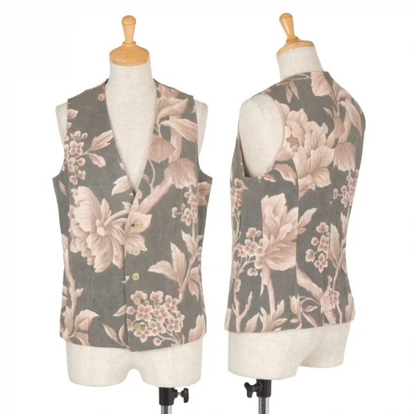 【最終値下げ】ジュンヤワタナベ コムデギャルソンJUNYA WATANABE COMME des GARCONS リネン混プリントデザインジレ グレーピンクS位