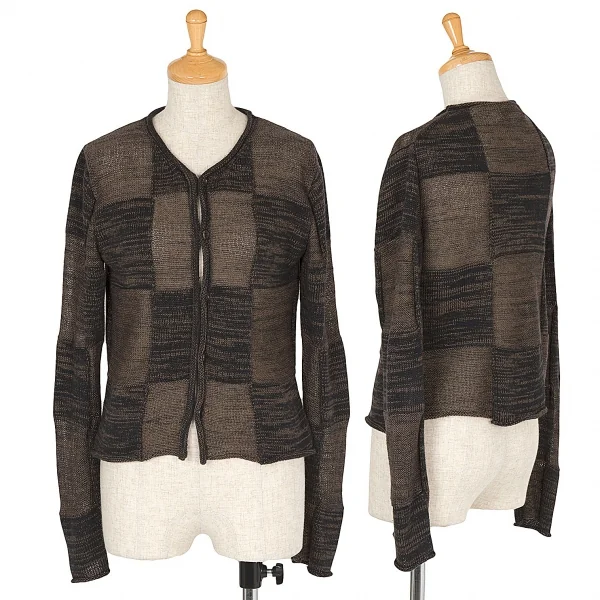 【SALE】ヨウジヤマモト ファムYohji Yamamoto FEMME ブロック編みラメニットカーディガン 茶3