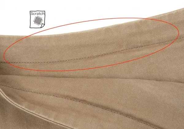 ウエスト周りに擦れあり(写真参照)。その他に目立ったシミ、汚れ、ほつれ等なくいい状態です。クリーニング済み