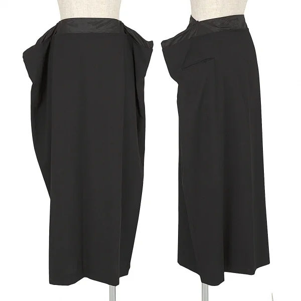 【SALE】ヨウジヤマモト ファムYohji Yamamoto FEMME ウエストファスナーデザインウールギャバワイドスカート 黒2