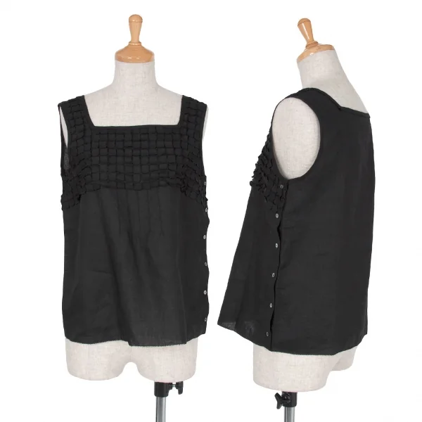 【SALE】バーニーズニューヨーク BARNEYS NEWYORK リネンサイドボタンタンクトップ 黒M位