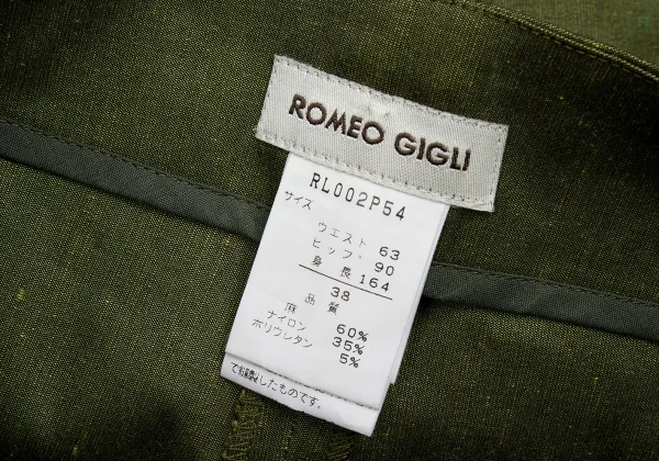 【SALE】ロメオジリROMEO GIGLI リネンナイロンサイドファスナーパンツ 緑38
