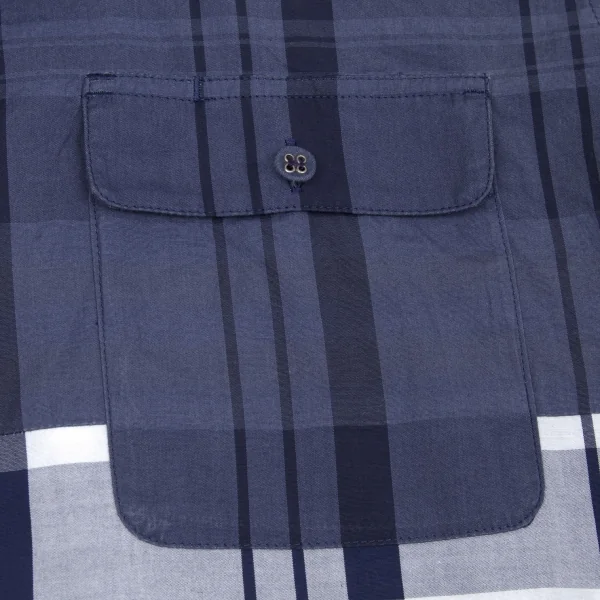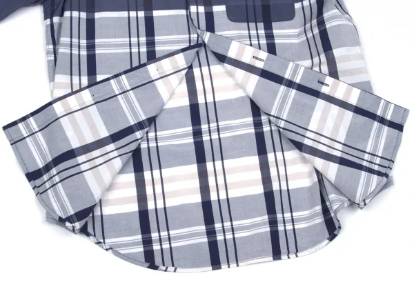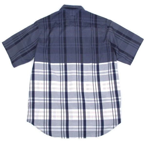 ホワイトマウンテニアリングWhite Mountaineering チェックコットン半袖シャツ 紺2