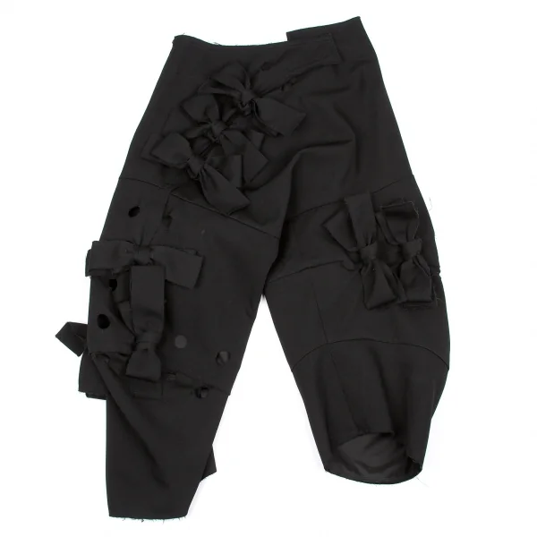 【SALE】コムデギャルソンCOMME des GARCONS ウールギャバリボン装飾ボンディング穴あきパンツ 黒XS