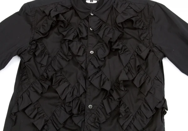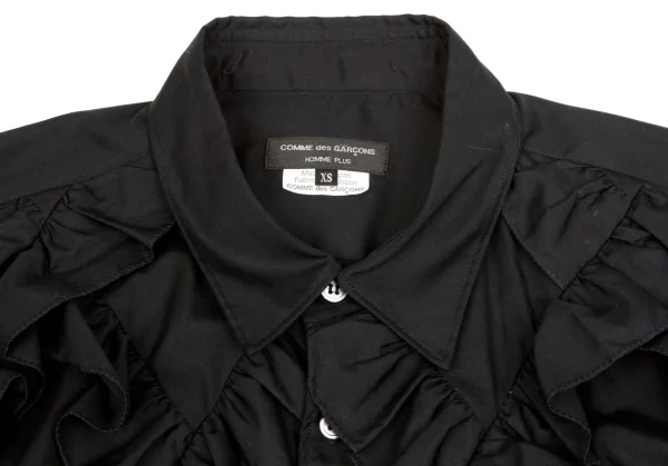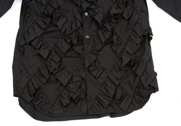 コムデギャルソン オムプリュスCOMME des GARCONS HOMME PLUS ダイヤキルトフリル装飾長袖シャツ 黒XS