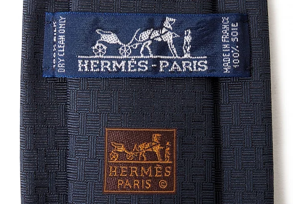 エルメスHERMES シルク織りデザインネクタイ 紺
