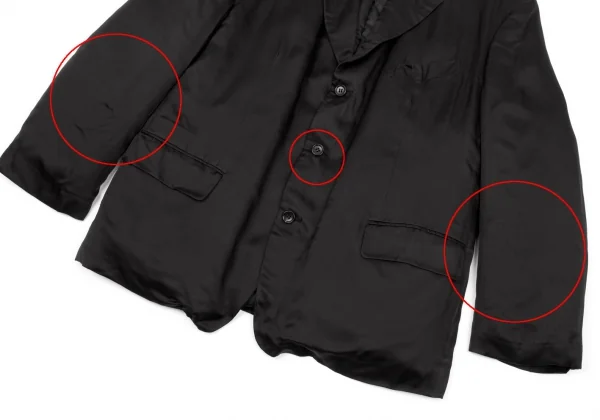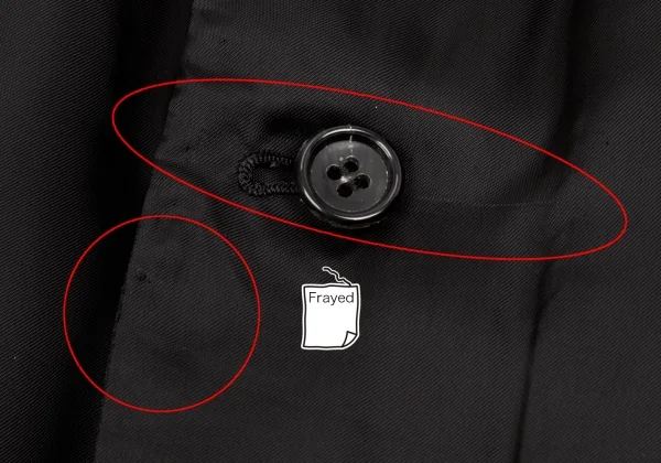 前身頃に引っ掛け、ボタンホールに糸引きあり。袖、後身頃に薄シミあり。(写真参照)その他に目立ったシミ、汚れ、ほつれ等なくいい状態です。クリーニング済み