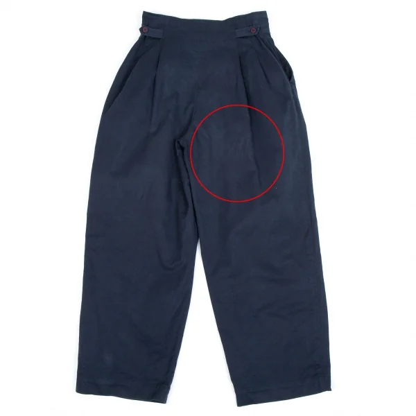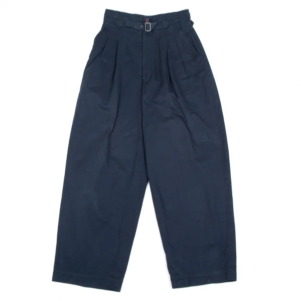 イッセイミヤケ メンISSEY MIYAKEMEN センターベルトデザイン2タックコットンパンツ 紺M