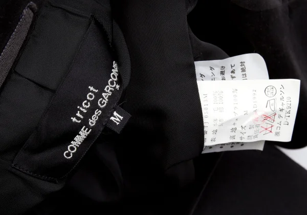 【SALE】トリコ コムデギャルソンtricot COMME des GARCONSベロアラペル6Bダブルジャケット 黒M
