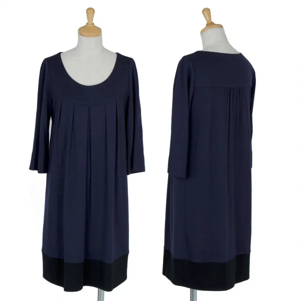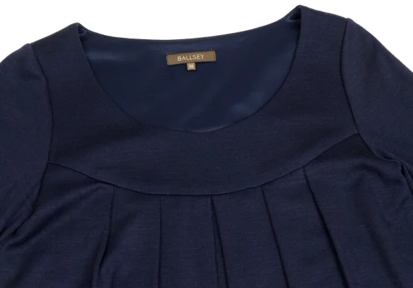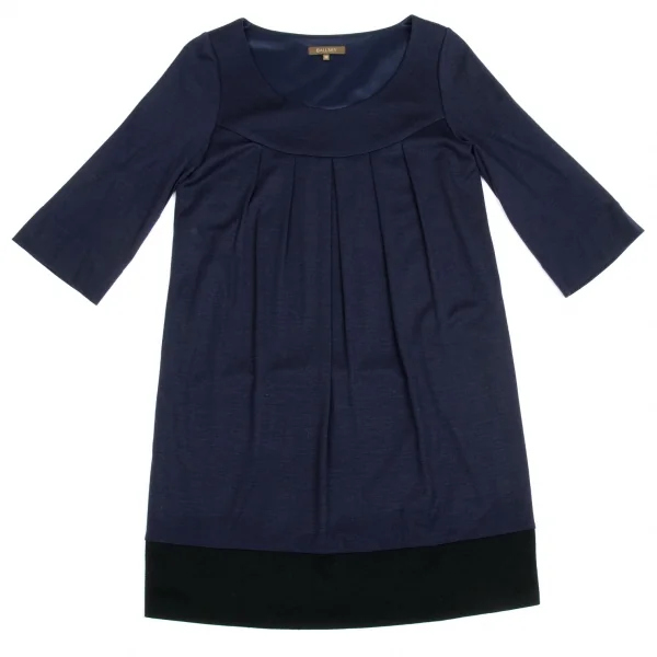 【SALE】ボールジーBALLSEY ウールプリーツデザインワンピース 紺38