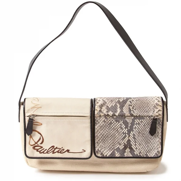 ジャンポールゴルチエJean Paul GAULTIER パイソンデザインミニバッグ 生成り
