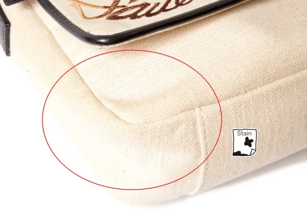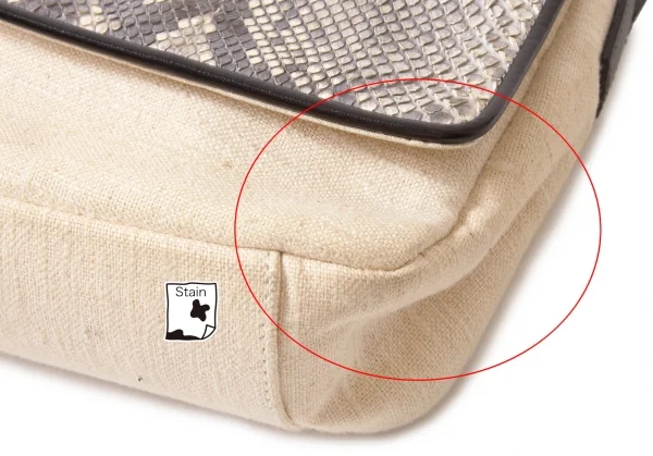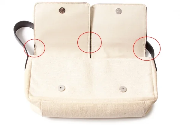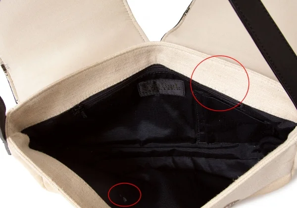 薄汚れ、薄シミあり。フラップ裏にダメージあり。内側に薄汚れあり。(写真参照)