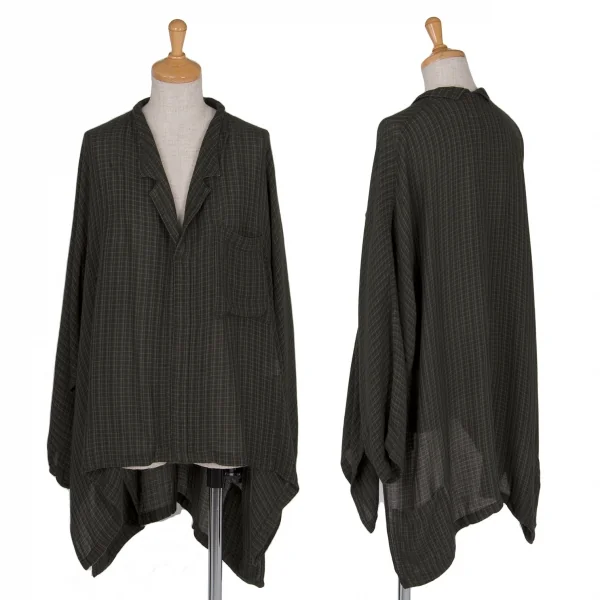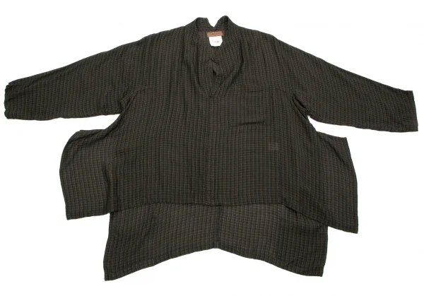 ヨウジヤマモト ファムYohji Yamamoto FEMMEレーヨンキュプラチェックプルオーバーシャツ 茶M