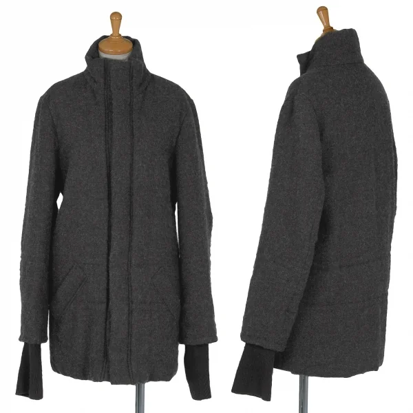【最終値下げ】ワイズY's スタンドカラーダブルジップ中綿ロングジャケット チャコール1