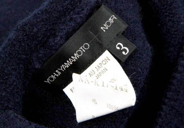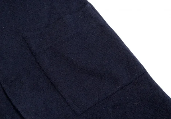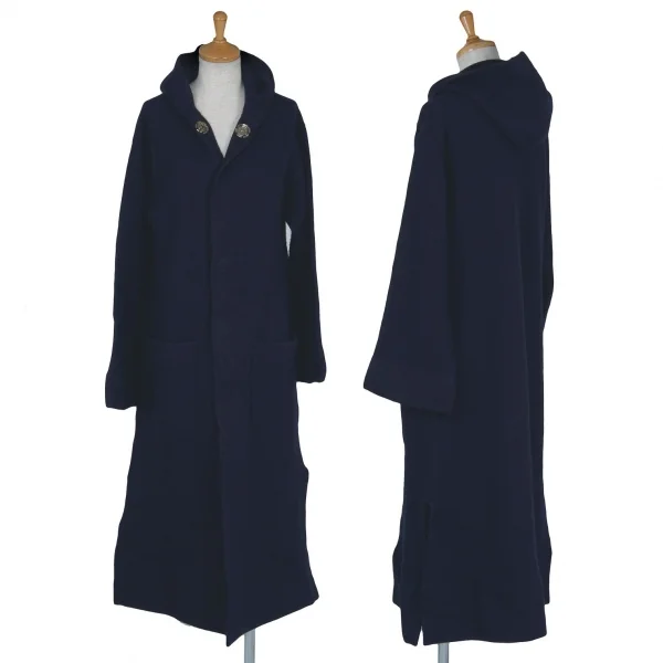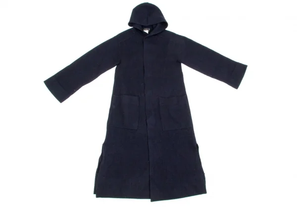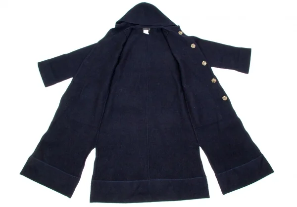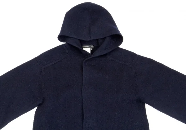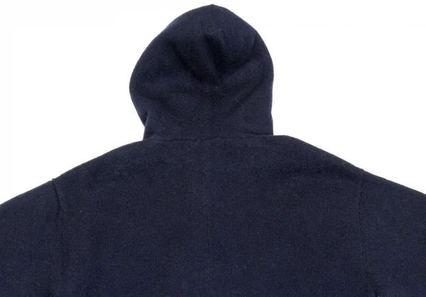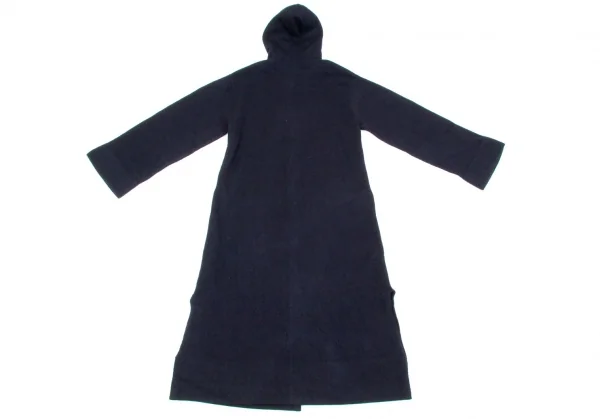 【最終値下げ】ヨウジヤマモト ノアールYohji Yamamoto NOIR ウールでかスナップボタンフードニットロングコート 紺3