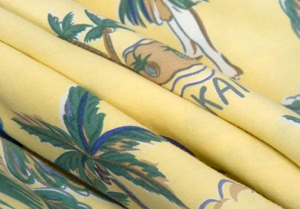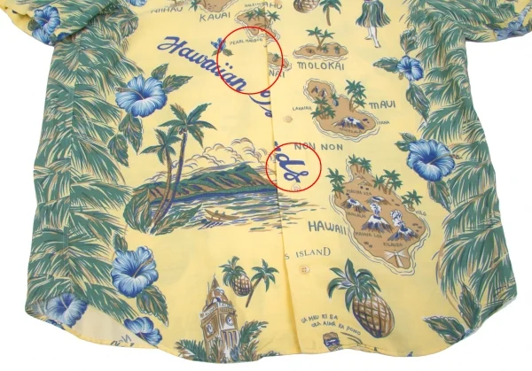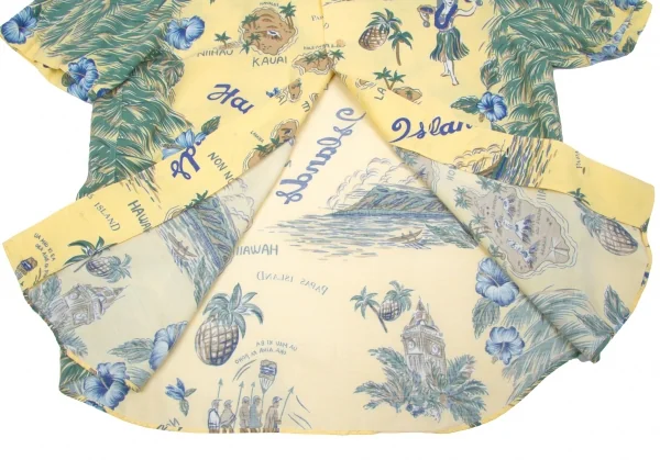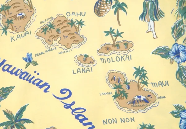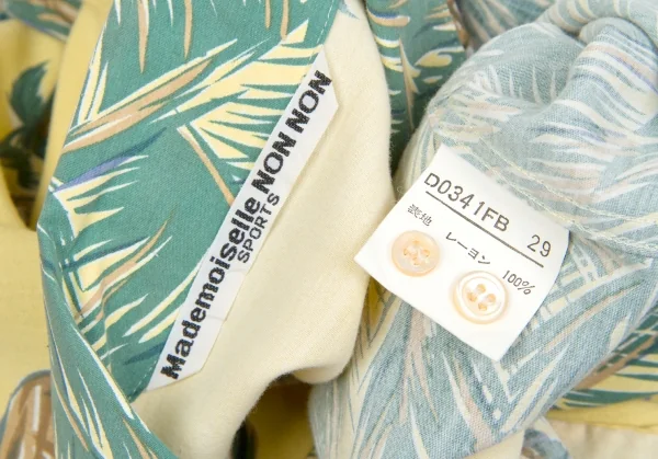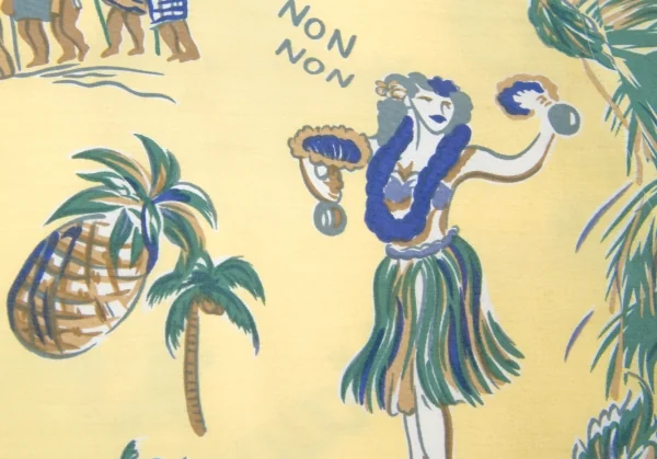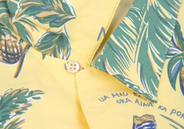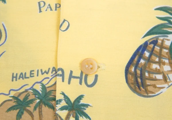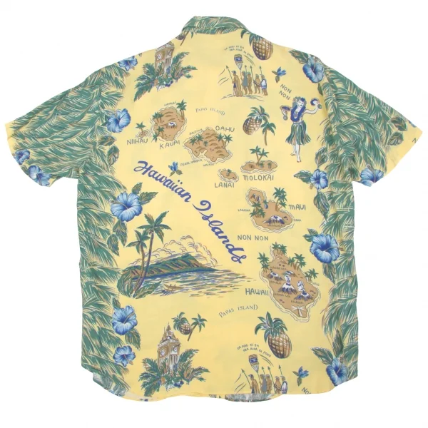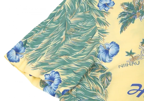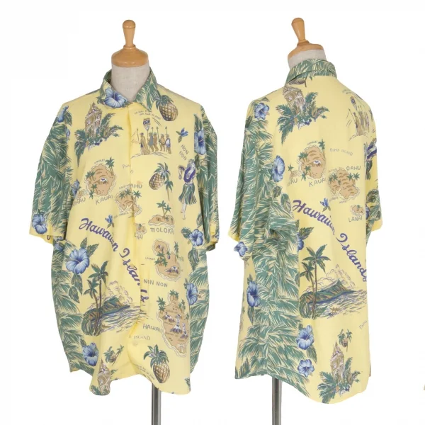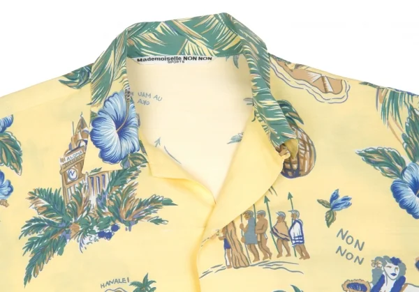 【SALE】マドモアゼルノンノンMademoiselle NON NON ハワイ柄アロハレーヨンシャツ 黄L位