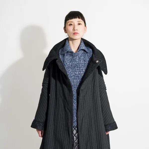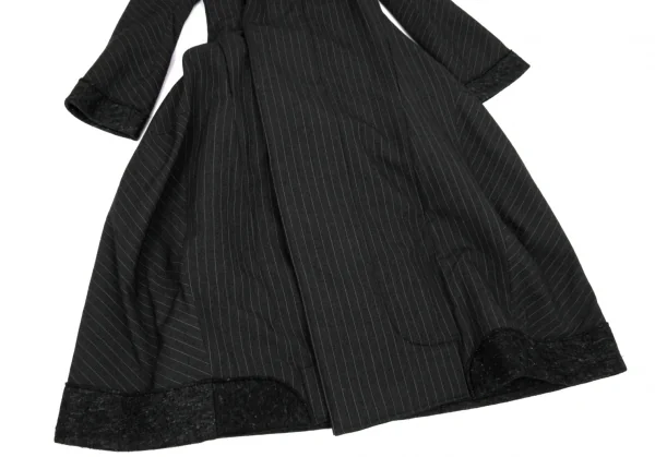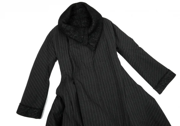 【SALE】ヨウジヤマモト ファムYohji Yamamoto FEMME フェルト裏ボンディングストライプコート チャコールF