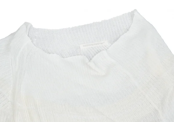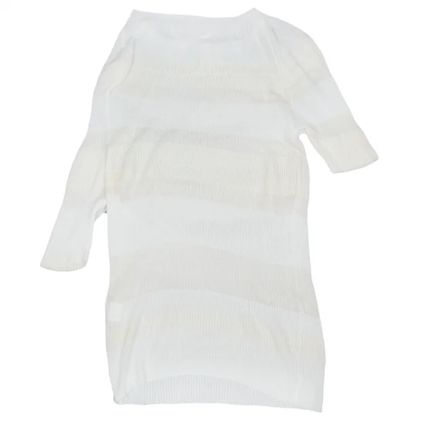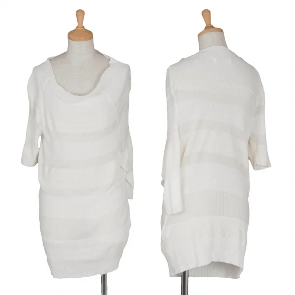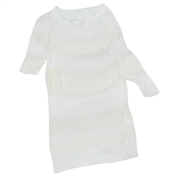 【最終値下げ】ヨウジヤマモト ノアールYohji Yamamoto NOIR ドレープネック半袖ボーダーリブニットトップス 白3