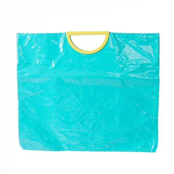 【SALE】プリーツプリーズPLEATS PLEASE メタルハンドルシワ加工ビニールクラッチバッグ 水色