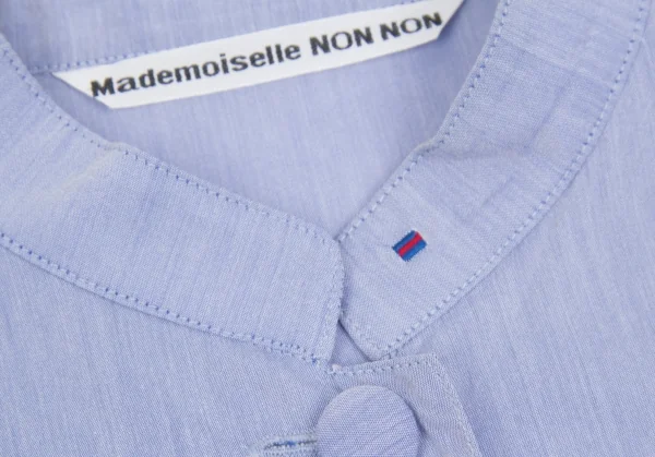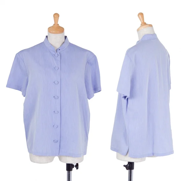 マドモアゼルノンノンMademoiselle NON NON コットンキュプラスタンドカラー半袖シャツ パープルM位