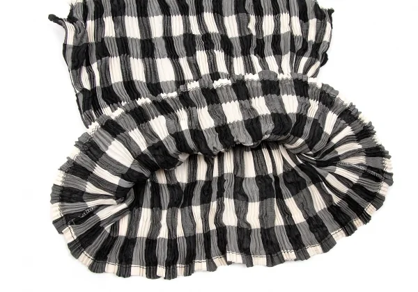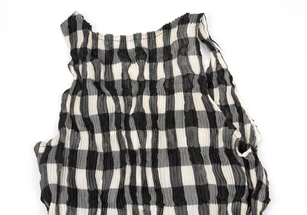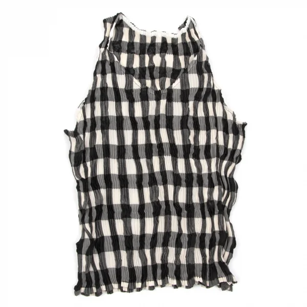 【SALE】イッセイミヤケISSEY MIYAKEプリーツブロックチェックタンクトップ 黒ベージュM
