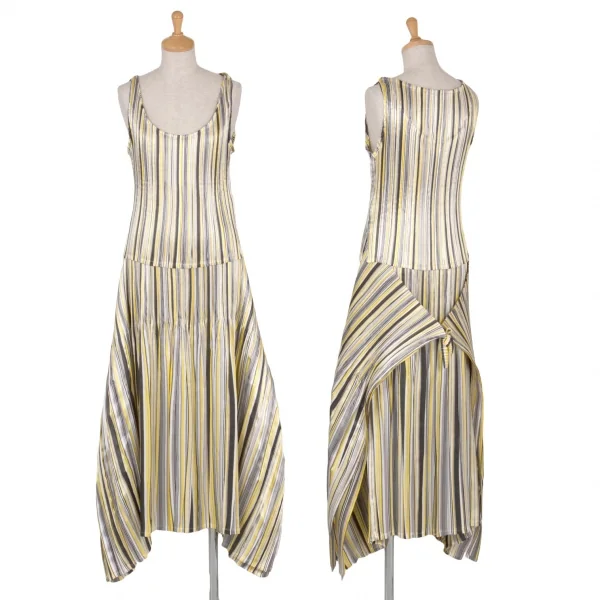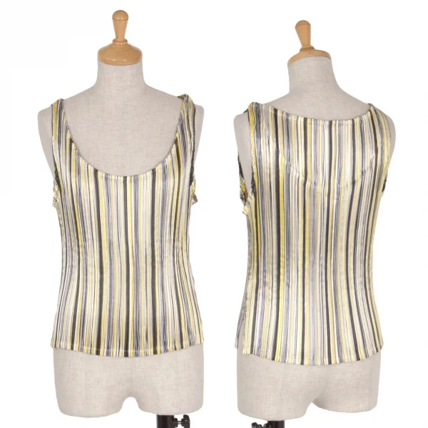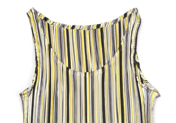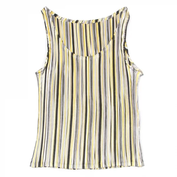 イッセイミヤケ ホワイトレーベルISSEY MIYAKE WHITELABEL 光沢カラフルプリーツタンクトップ 黄グレーオフ2