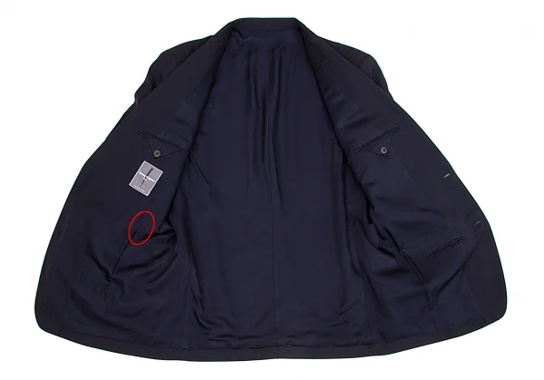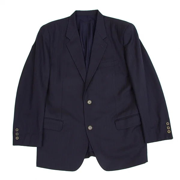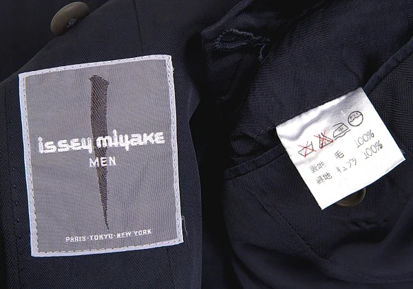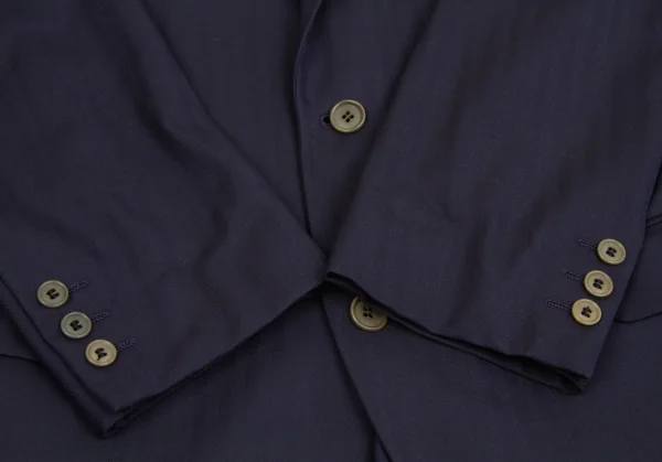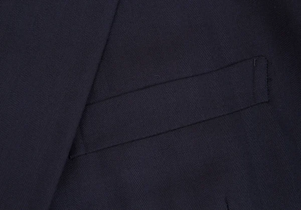 イッセイミヤケ メンISSEY MIYAKEMEN ウールヘリンボーンデザインジャケット 紺M