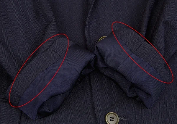 袖裏薄汚れ、裏地右身頃薄汚れがあります(写真参照)その他目立ったシミ、汚れ、ほつれ等なくいい状態です。クリーニング済み