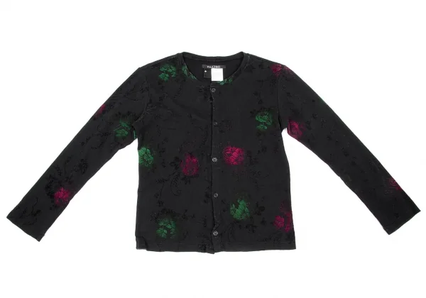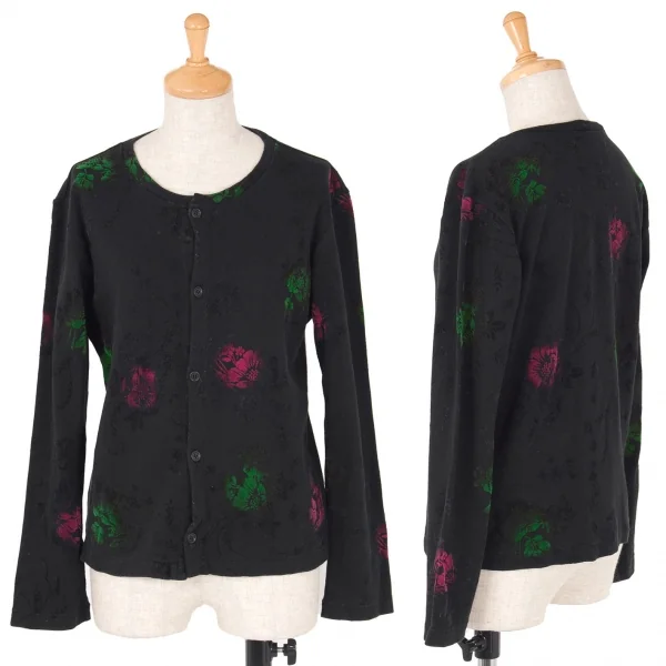 【最終値下げ】ワイズビスリミY's bis LIMI 花柄フロッキープリント天竺カーディガン 黒ピンク緑S