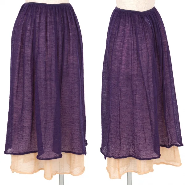 【SALE】ワイズビスリミY's bis LIMI ウールメッシュニットレイヤードスカート 紫ベージュS
