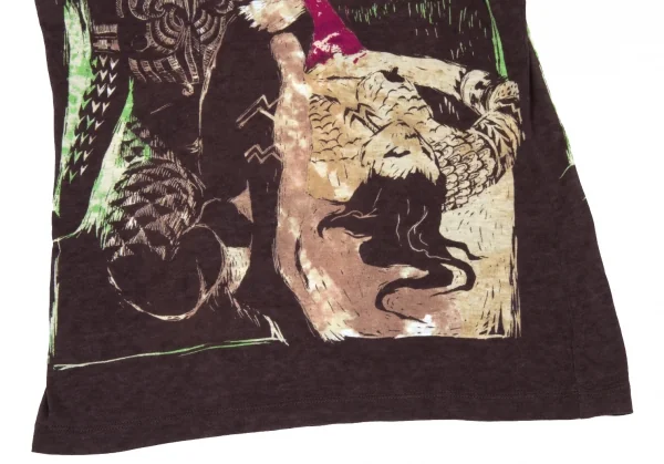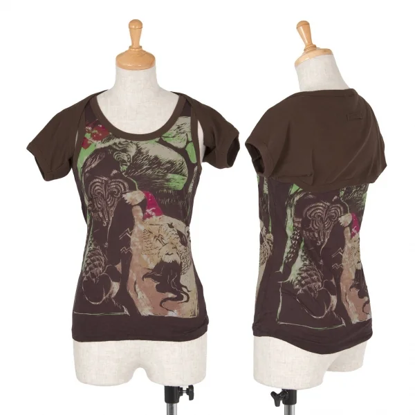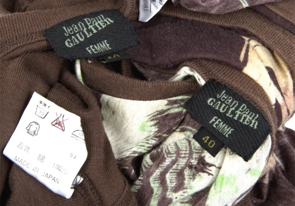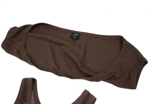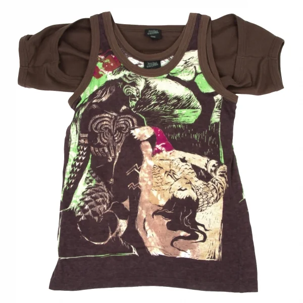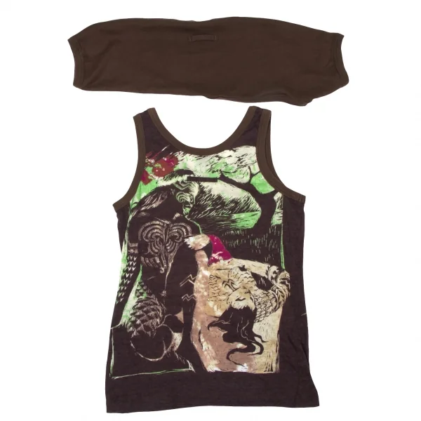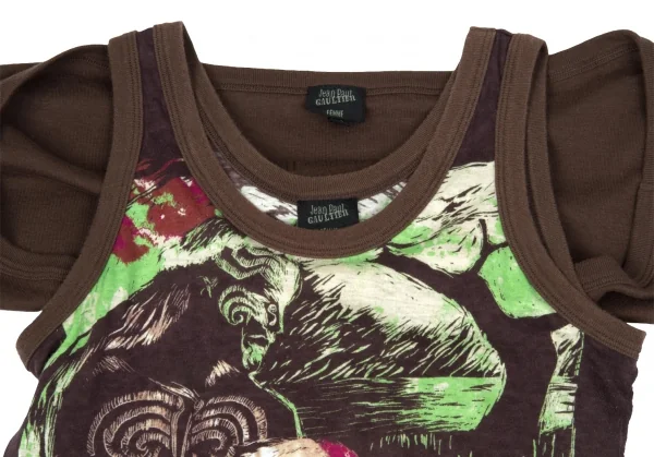 ジャンポールゴルチエファムJean Paul GAULTIER FEMME アームウォーマー付きグラフィックプリントタンクトップ 茶他40