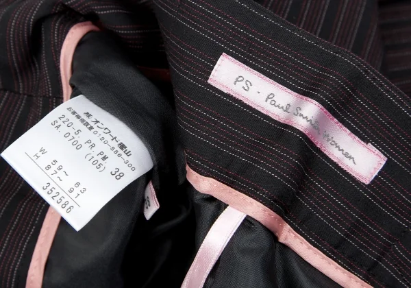 ポールスミス ウーマンPaul Smith women 混紡ポリシンチバックピンストライプパンツ ボルドー黒他1