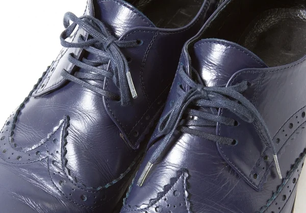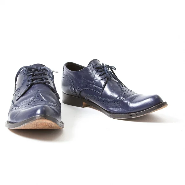 【SALE】リミフゥLIMI feu ポインテッドトゥレザーウイングチップシューズ 青紫23.5位