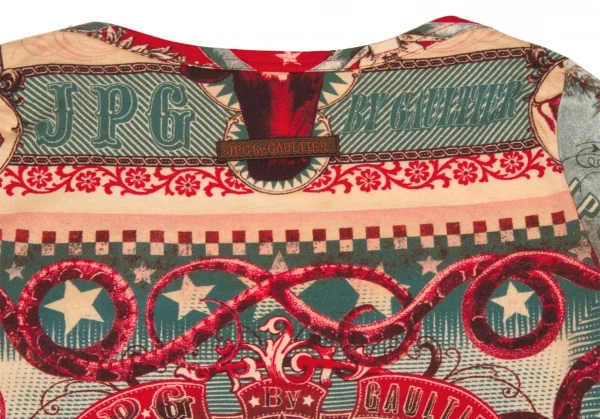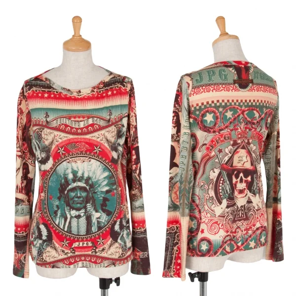 ジャンポールゴルチエJean Paul GAULTIER ARIS インディアン総柄プリントボートネックカットソー 赤ベージュ他40