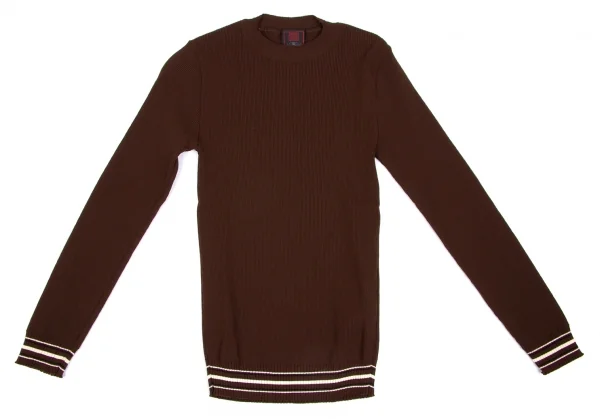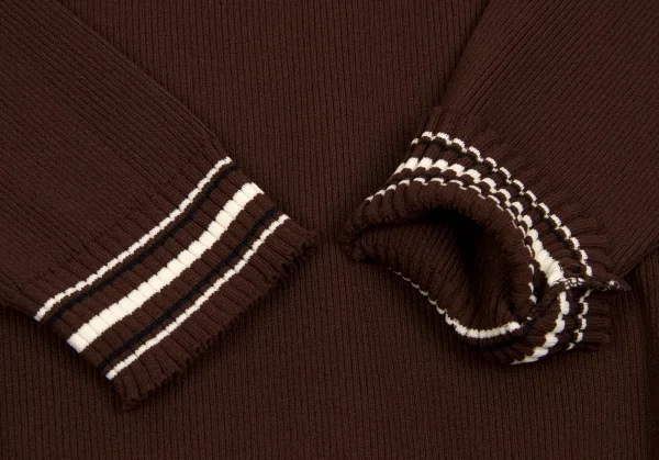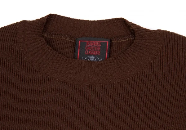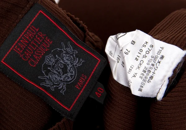 【SALE】ジャンポールゴルチエ クラシックJean Paul GAULTIER CLASSIQUE ラインデザインナイロン長袖リブニット 茶白40