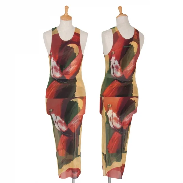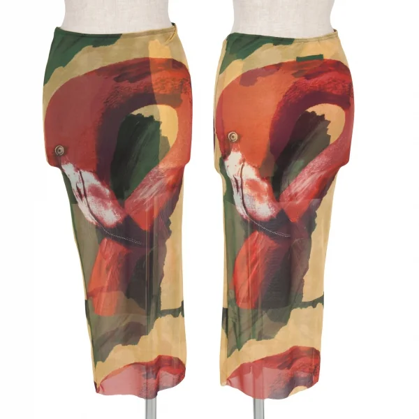 ジャンポールゴルチエファムJean Paul GAULTIER FEMME フラミンゴプリントパワーネットセットアップ マルチ40