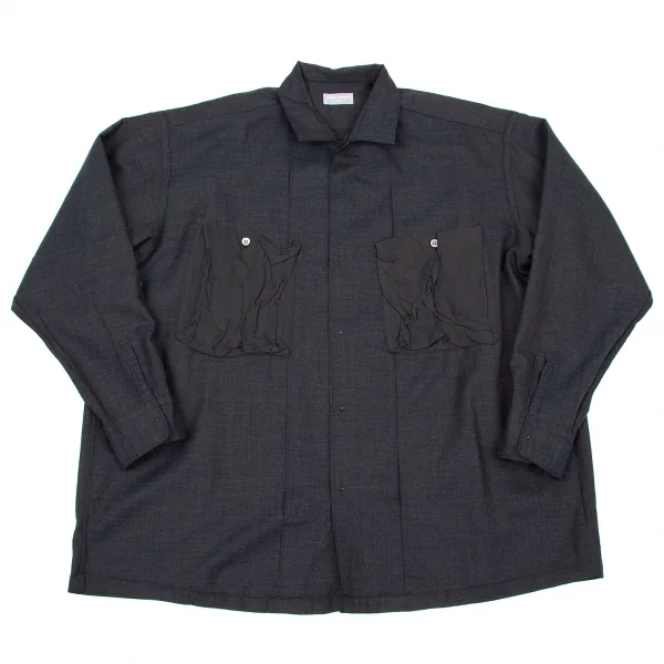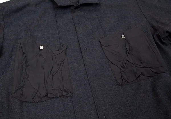 コムデギャルソンオムCOMME des GARCONS HOMME キュプラポケットリバーシブルウールシャツ 紺L位