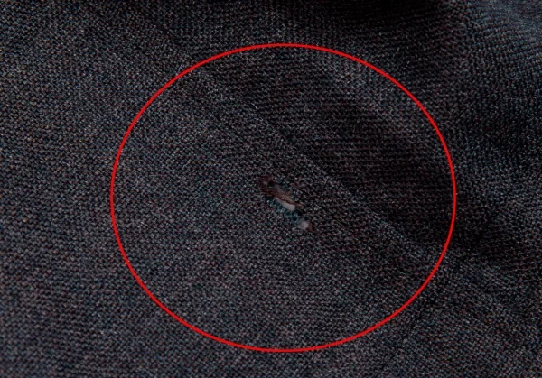 裾に穴、裏側の袖口に汚れが有ります(写真参照)