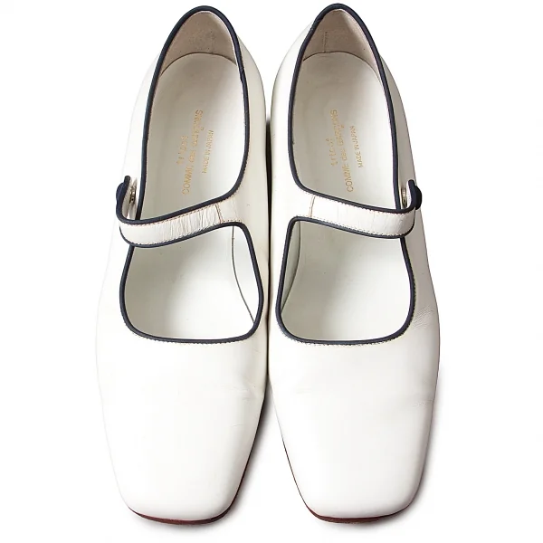 トリコ コムデギャルソンtricot COMME des GARCONS スクエアトゥストラップフラットシューズ 白24