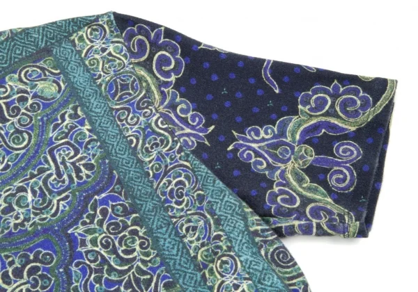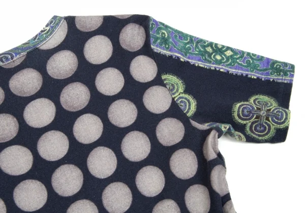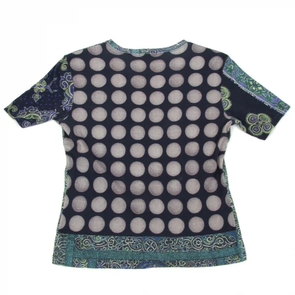 【SALE】イッセイミヤケISSEY MIYAKEバックドット総柄プリント半袖Tシャツ 紺他M