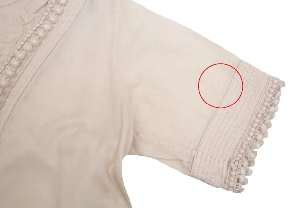 前身頃に薄シミ、首元に生地擦れが有ります(写真参照)。クリーニング済み