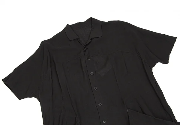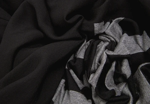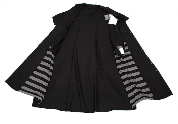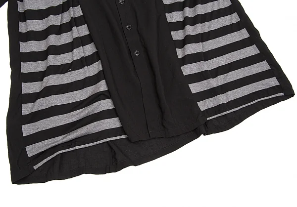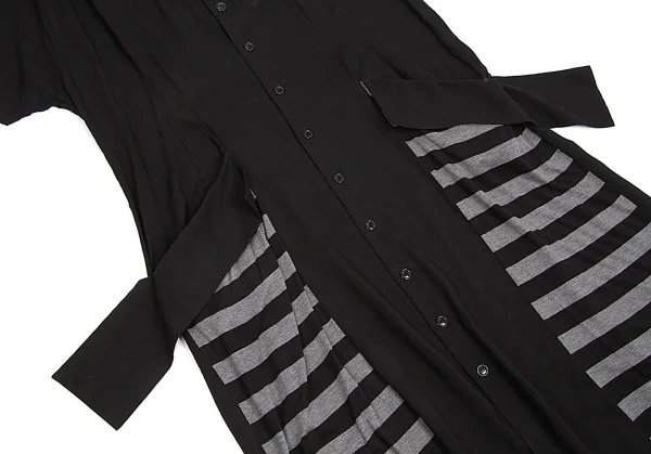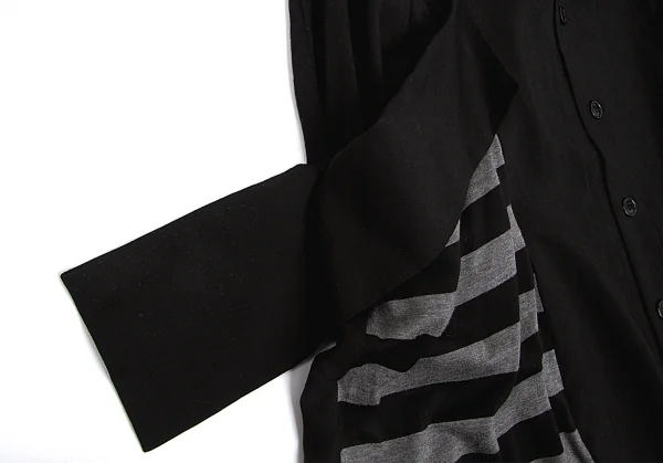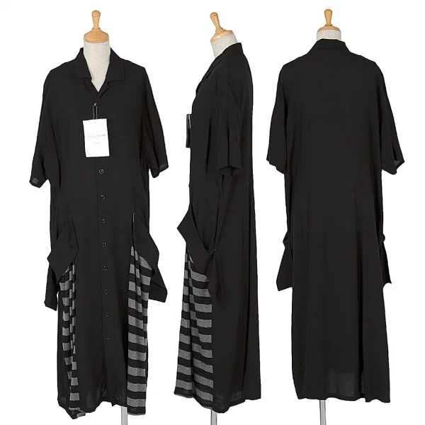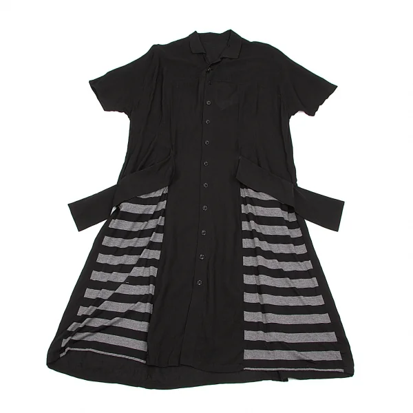 新品!ヨウジヤマモト ノアール yohji yamamoto NOIR ボーダー切替テンセルロングシャツワンピース 黒杢グレー1