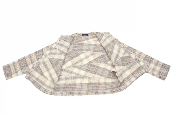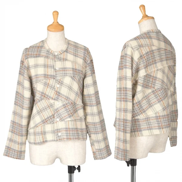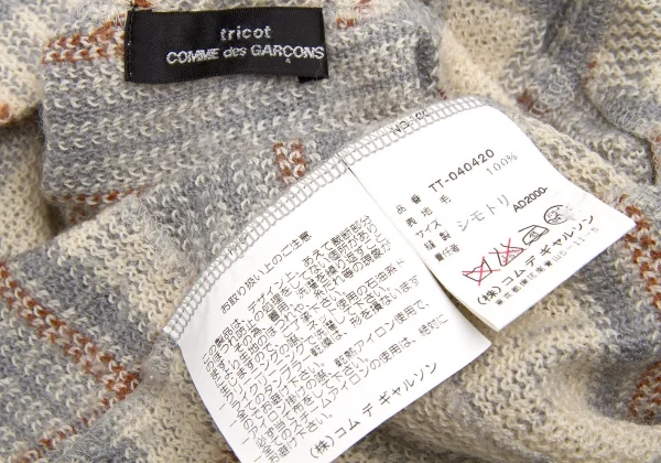 【SALE】トリコ コムデギャルソンtricot COMME des GARCONS ウールチェック切り替えカーディガン ベージュグレー他M位