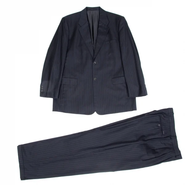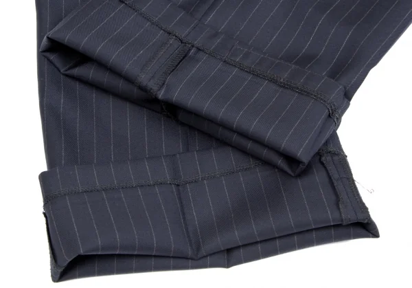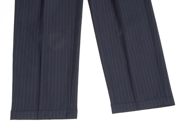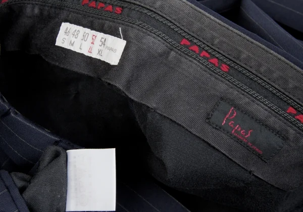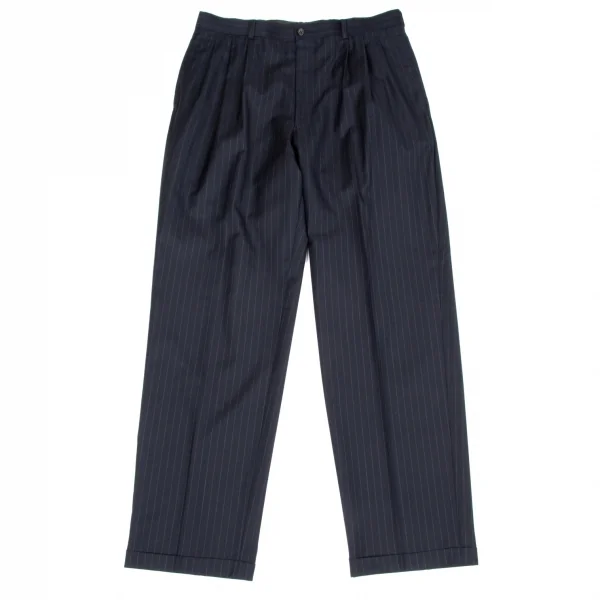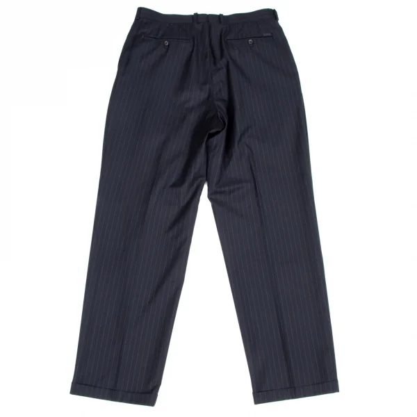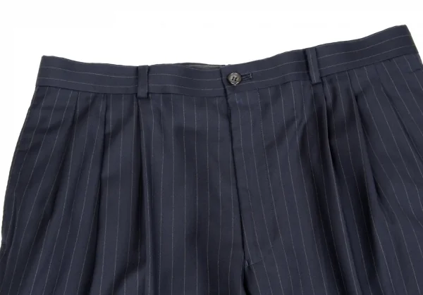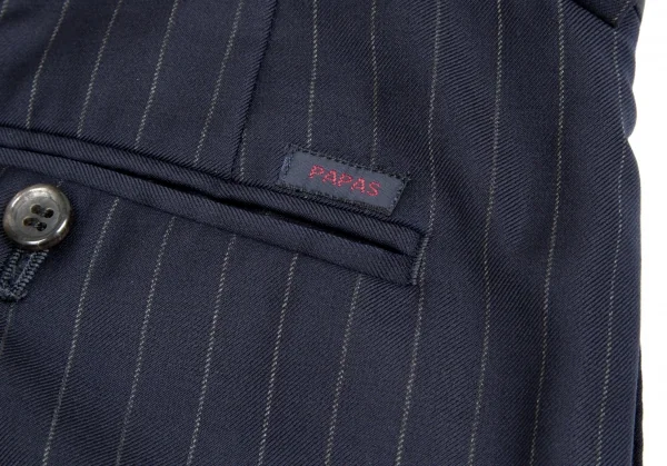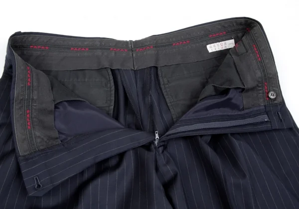 【SALE】パパスPapas ウールストライプスリータックパンツ 紺グレーLL