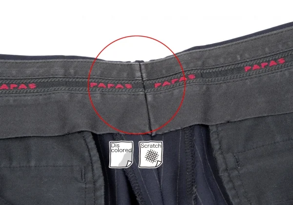 品質タグ消え、前開き部分にスレ、ウエスト裏に薄汚れがあります。(画像参照)その他目立ったシミ、汚れ、ほつれ等なくいい状態です。クリーニング済み